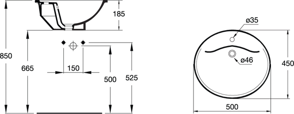 الشكل : حوض بيضاوي 50 × 45 سم.