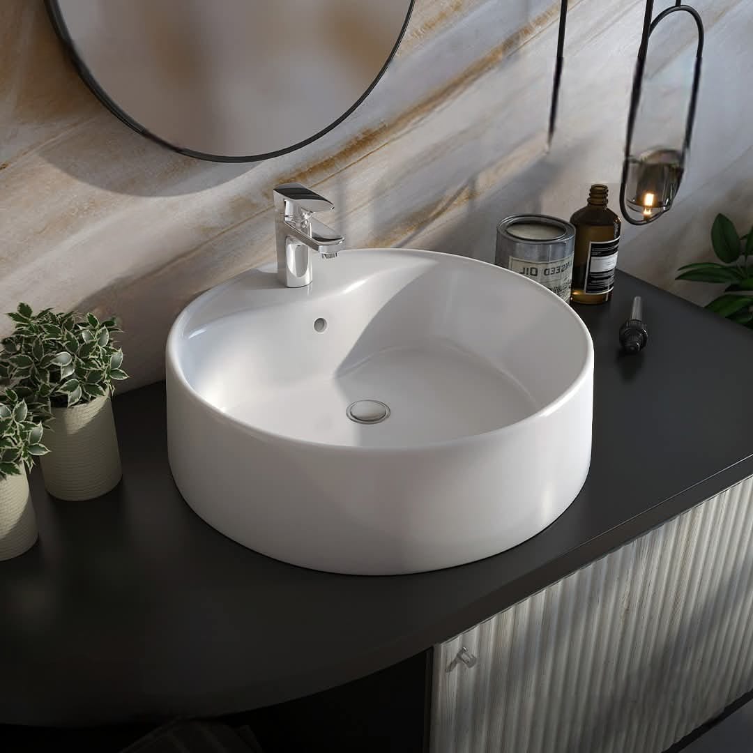 حوض ديربى ليسيكو دائري 50 سم فوق رخامة اللون أبيض Lecico