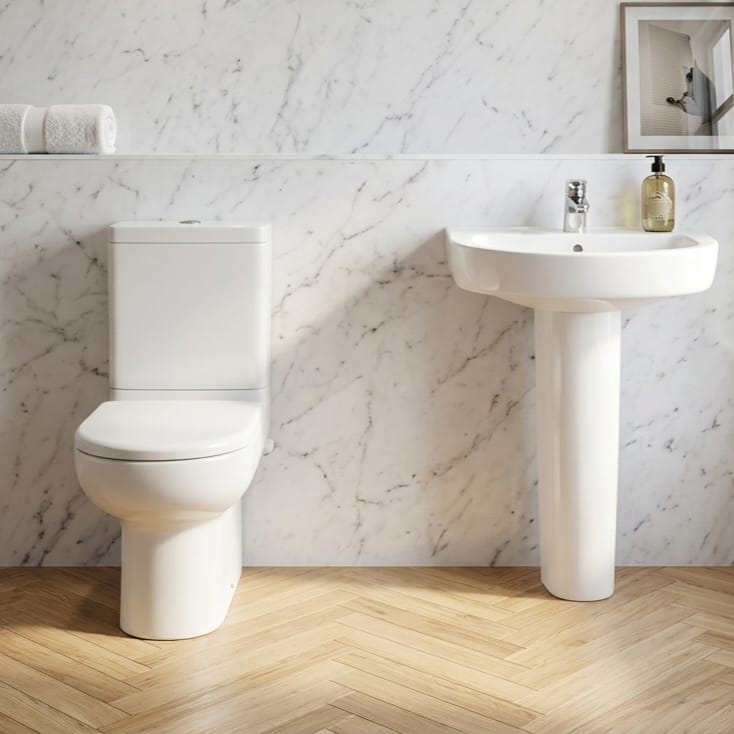 طقم روزيتا ساني بيور حوض 55 سم عامود طويل سيديلى عادي ابيض