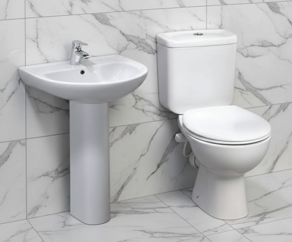 طقم حمام كامل سبيس ايديال حوض 55 عامود طويل سيديلى عادى ابيض